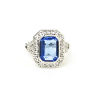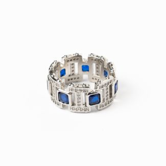 Una de nuestras piezas más especiales, el anillo Princes esta compuesto por piedras semi preciosas en azul Zafiro rodeada por puntas de brillantes.