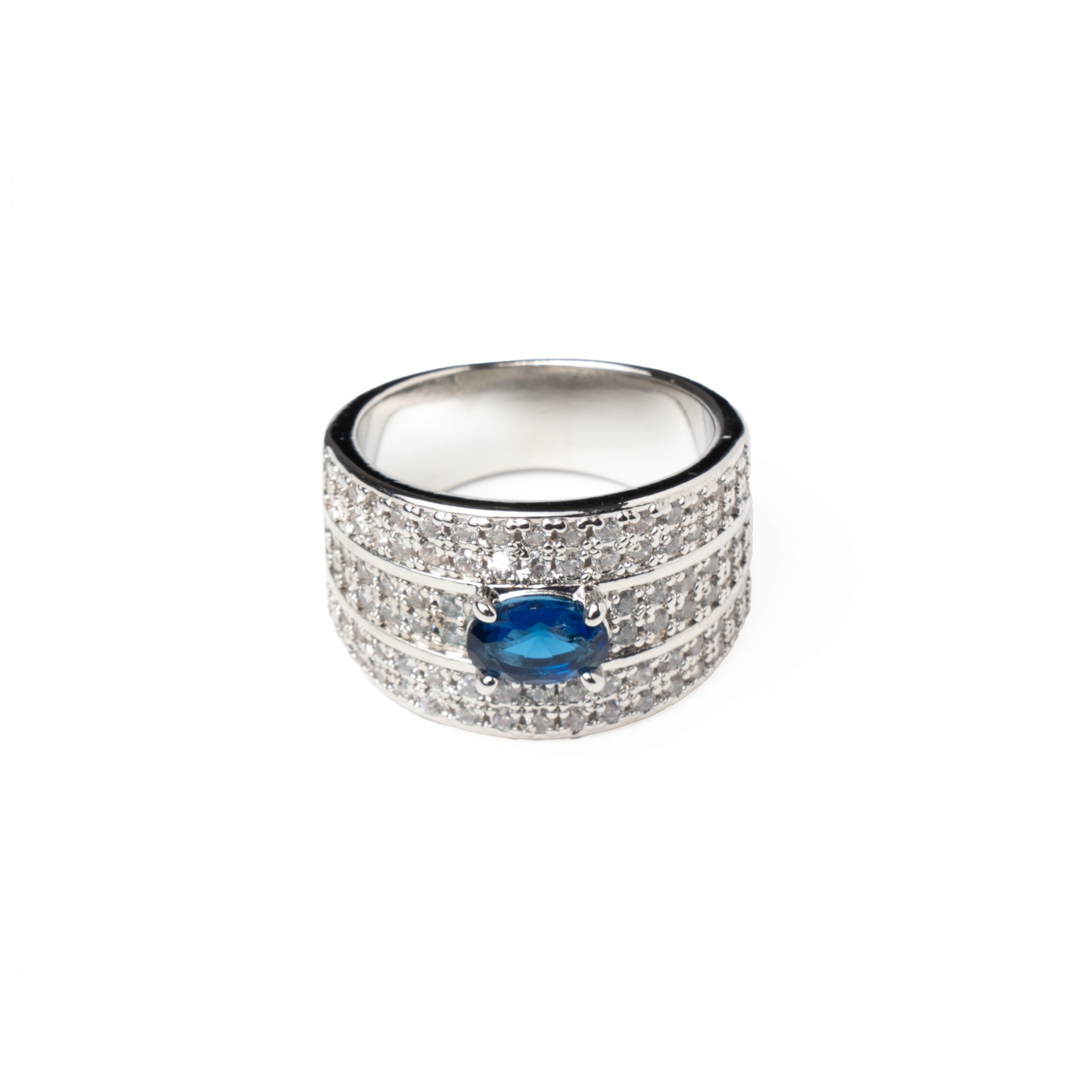 Piedra preciosa de brillantes y gran piedra zafiro en el centro.