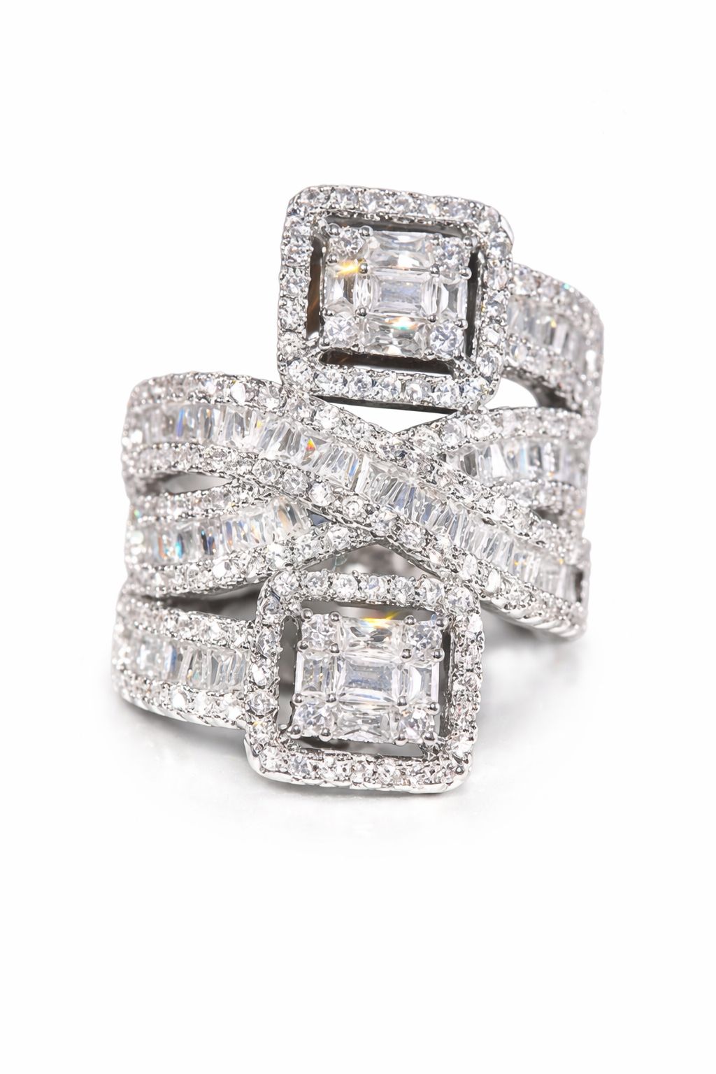 Anillo estilo art-decó de piedras preciosas brillantes.