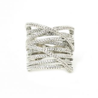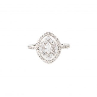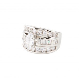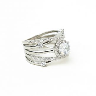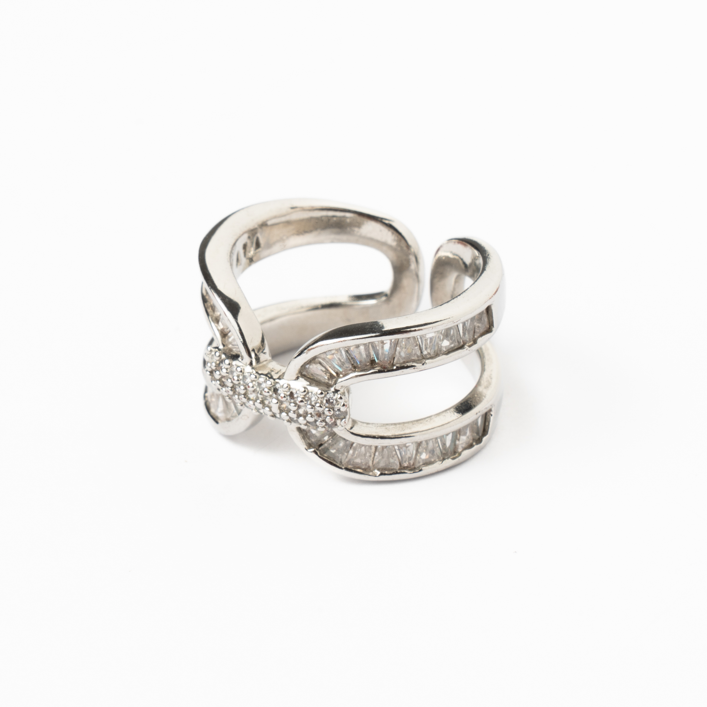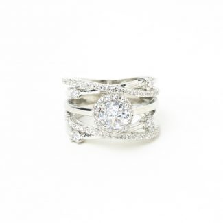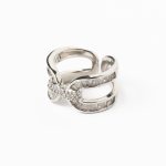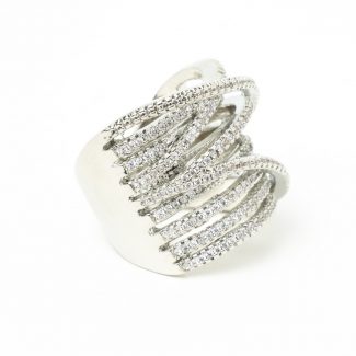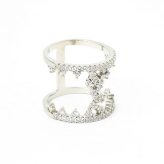 Precioso anillo con piedras preciosas en diamante y esmeralda en forma de hoja que envuelve.