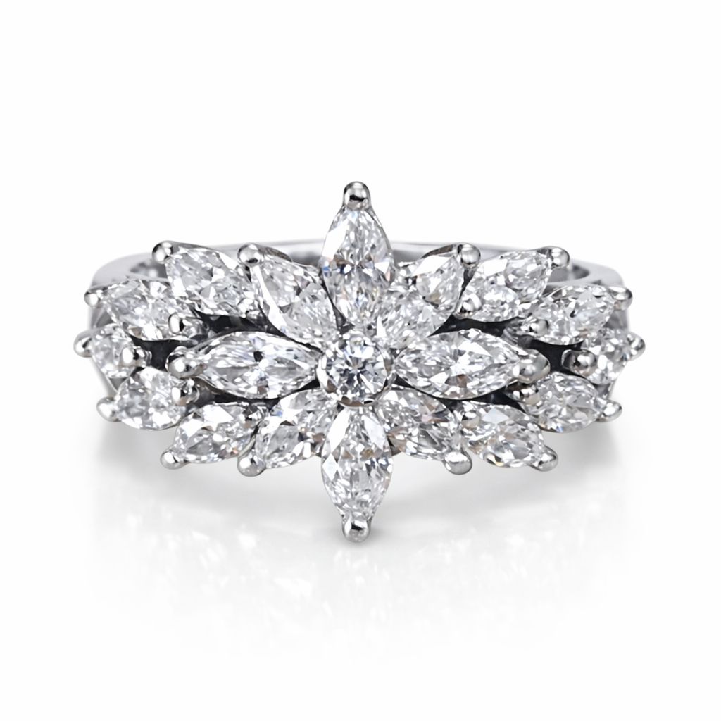 Anillo estilo art-decó de piedras preciosas brillantes.