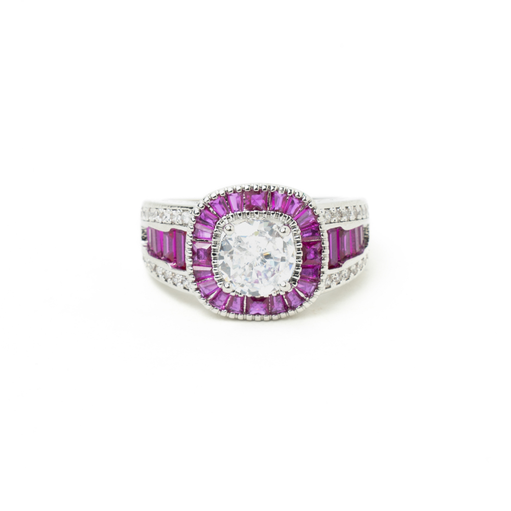 Agrupación de piedras semi preciosas en color magenta y diamantes.