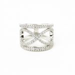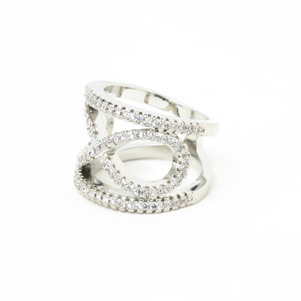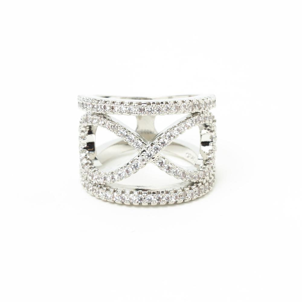 La pieza Infinity esta compuesta por brillantes talla diamantes sobre rodio bañado en plata.