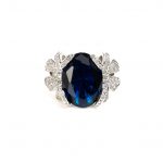Anillo con gran Zafiro engarzado por brillantes en forma de hoja.