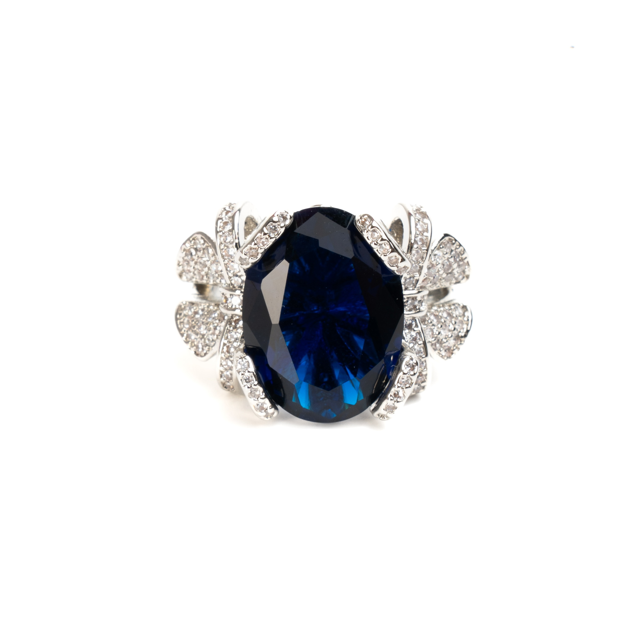 Piedra preciosa de brillantes y gran piedra zafiro en el centro.