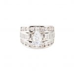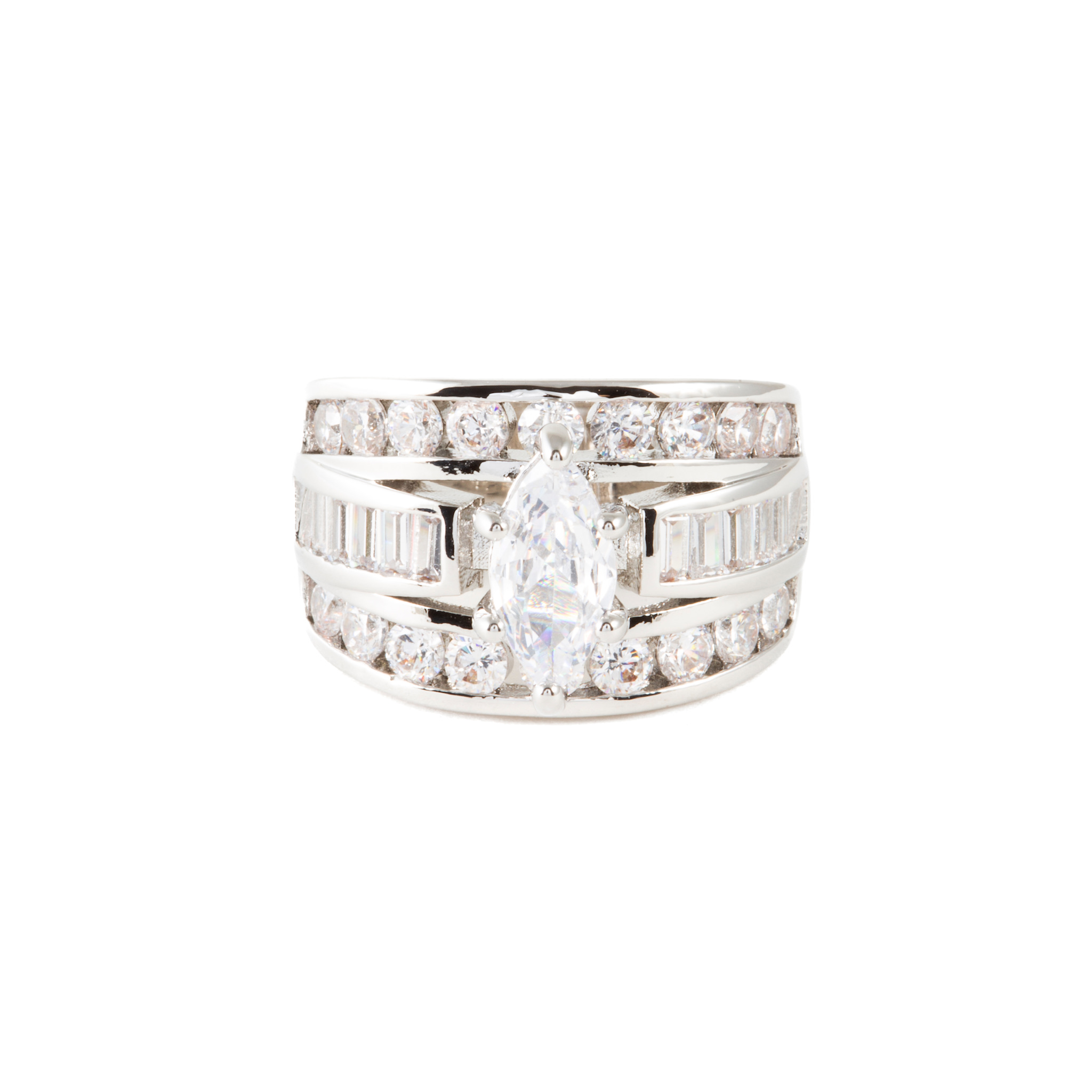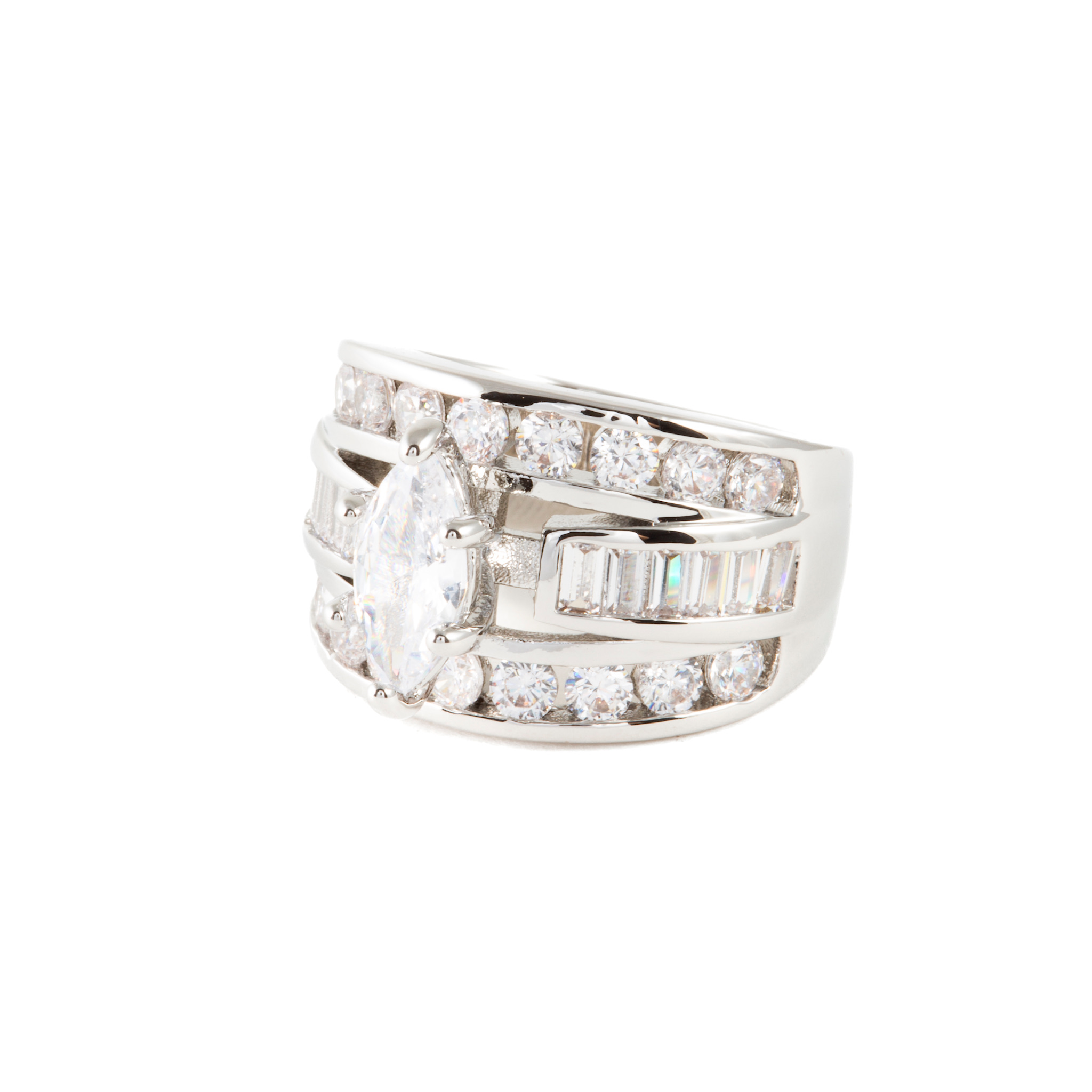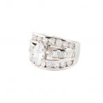 Anillo ancho con con diamantes, con gran piedra en el centro.