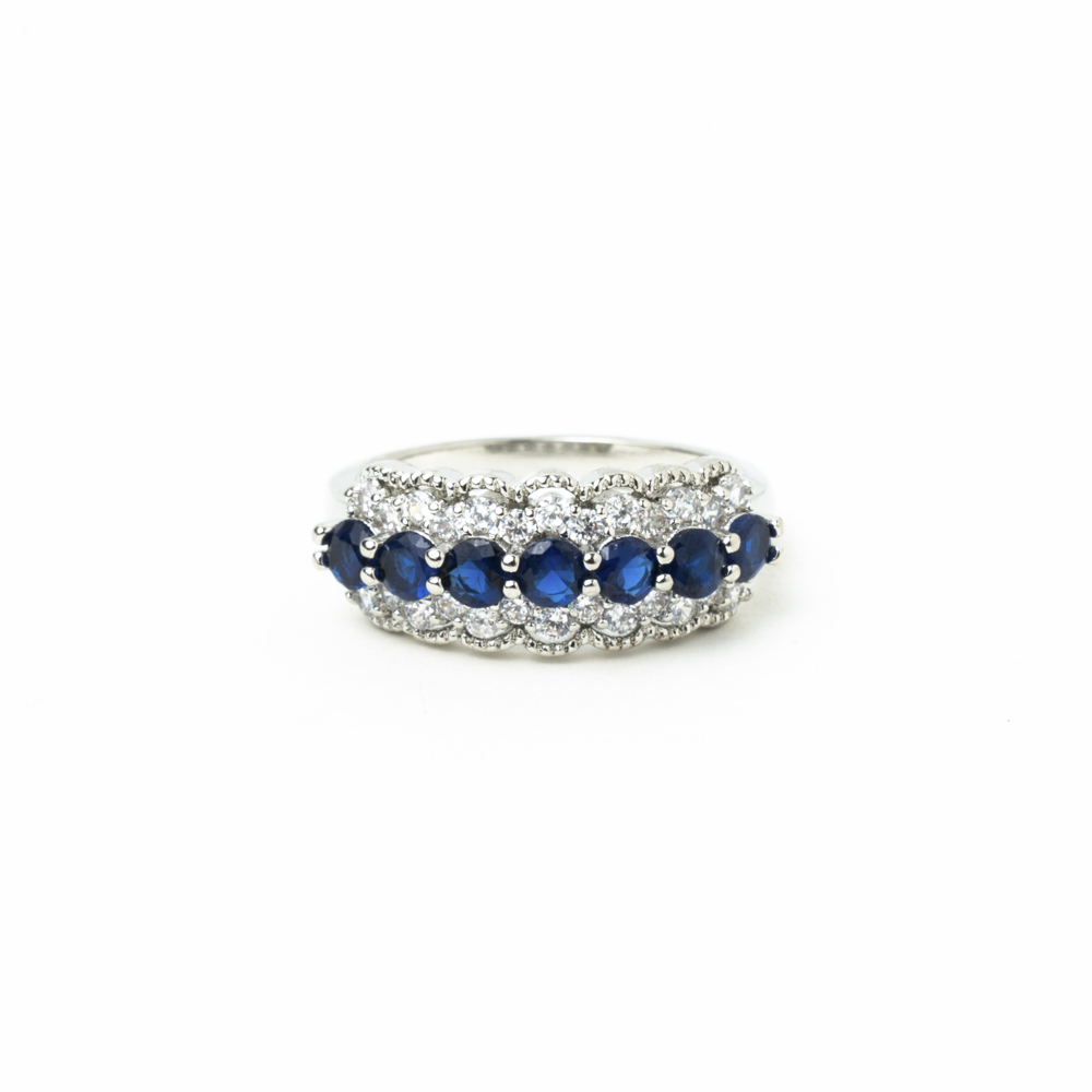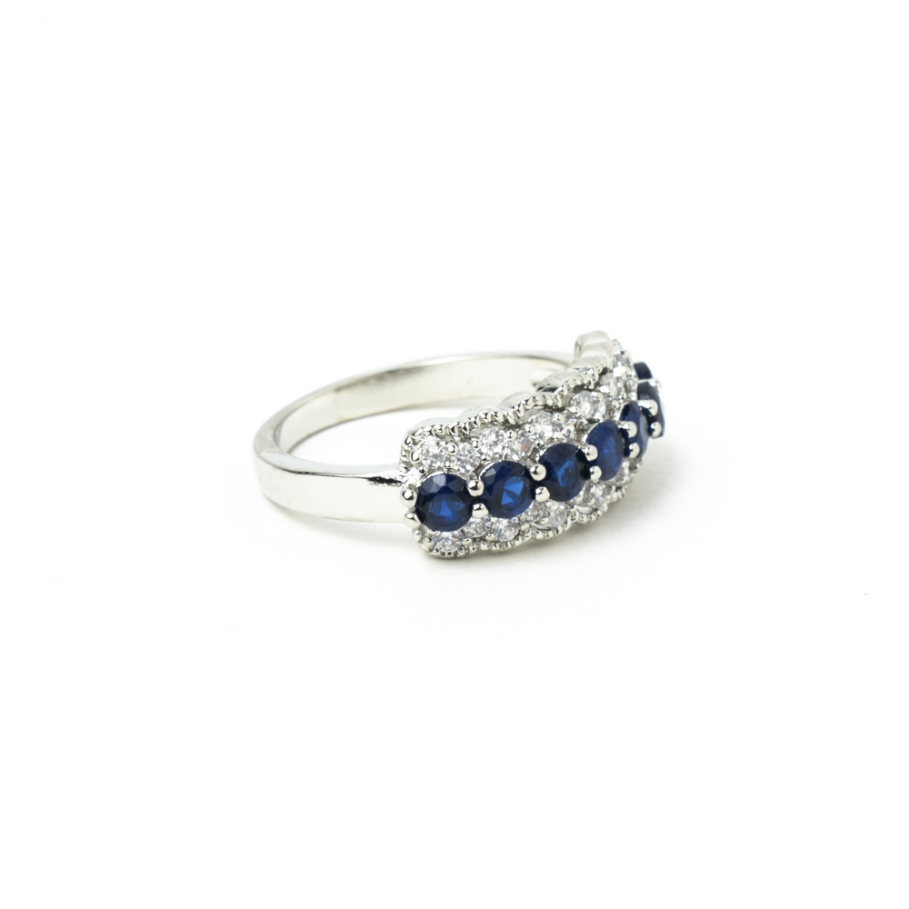Una de nuestras piezas más especiales, el anillo Princes esta compuesto por piedras semi preciosas en azul Zafiro rodeada por puntas de brillantes.