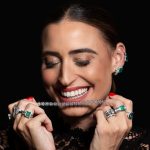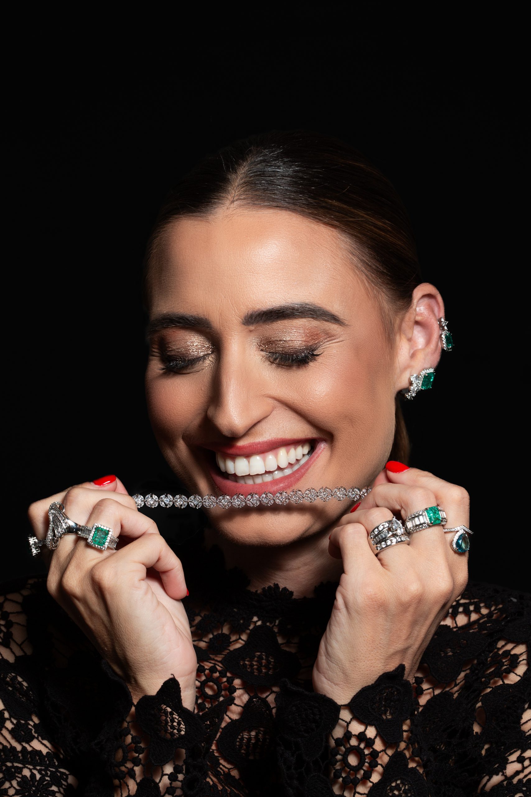 El anillo snake es una pieza de talla única completamente adaptable a cualquier medida. Esta compuesta por una piedra color zafiro acompañada de puntas de brillantes sobre rodio bañado en plata.
