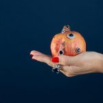 Composición de piedras semi preciosas en color magenta y diamantes talla brillantes. Una de nuestras piezas con mayor personalidad.