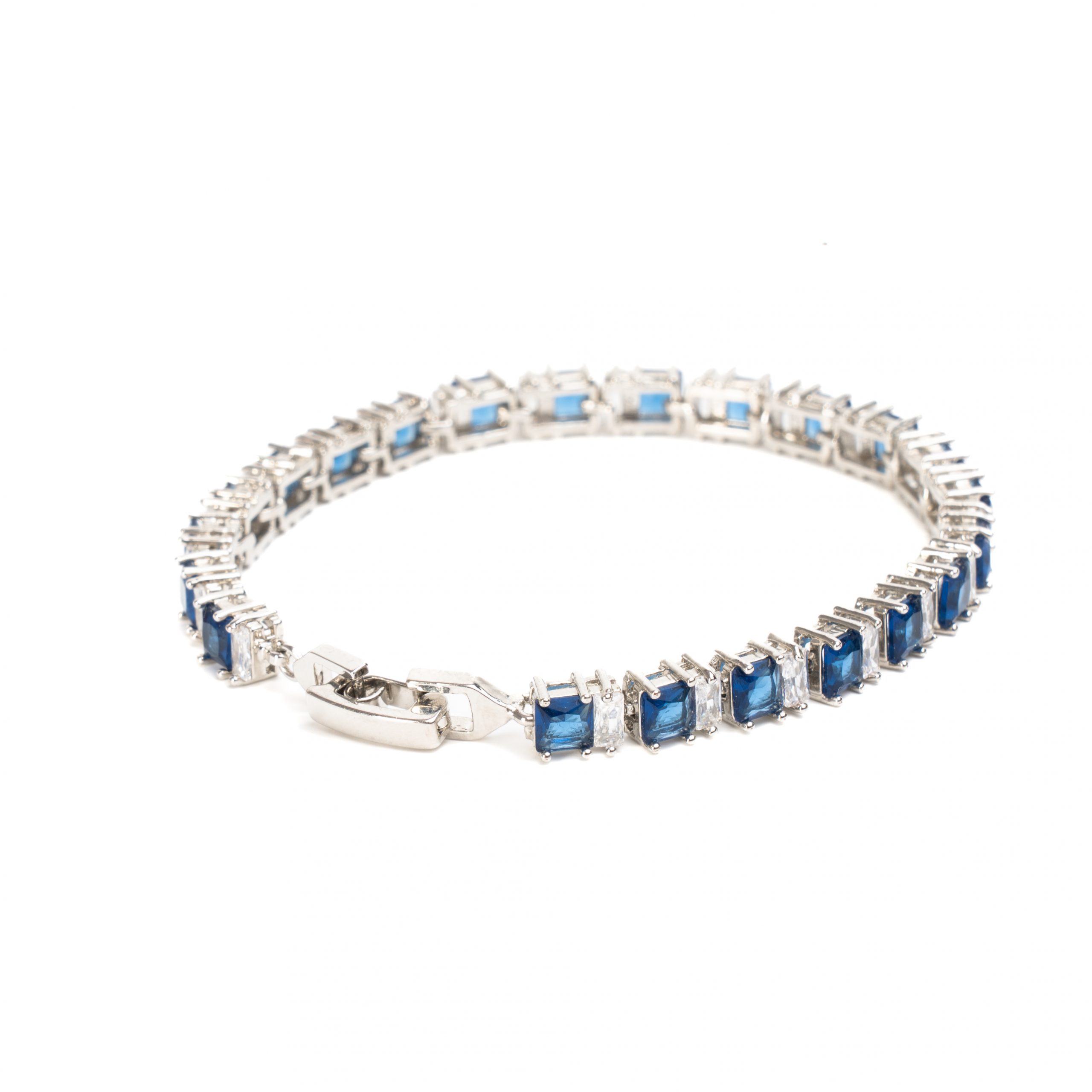 Una pieza clásica compuesta por diamantes talla brillantes y tamaño baguete sobre rodio bañado en plata.