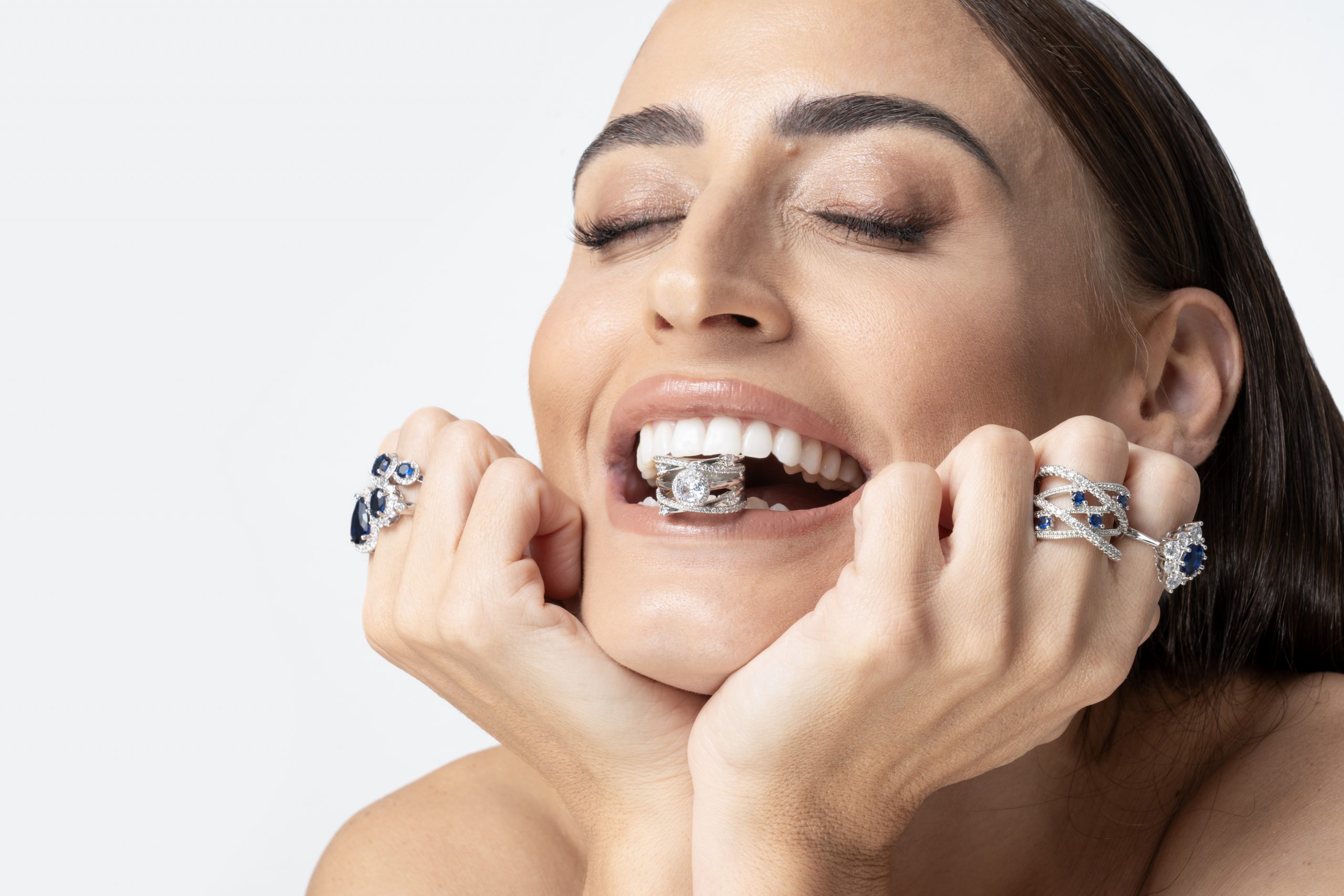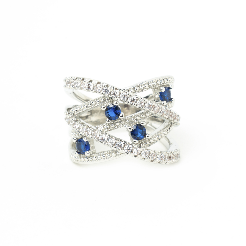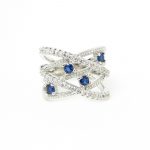 Anillo Sky es una de nuestras pizas más especiales, compuesta por agrupación de piedras preciosas color zafiro acompañada de diamantes talla brillantes