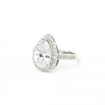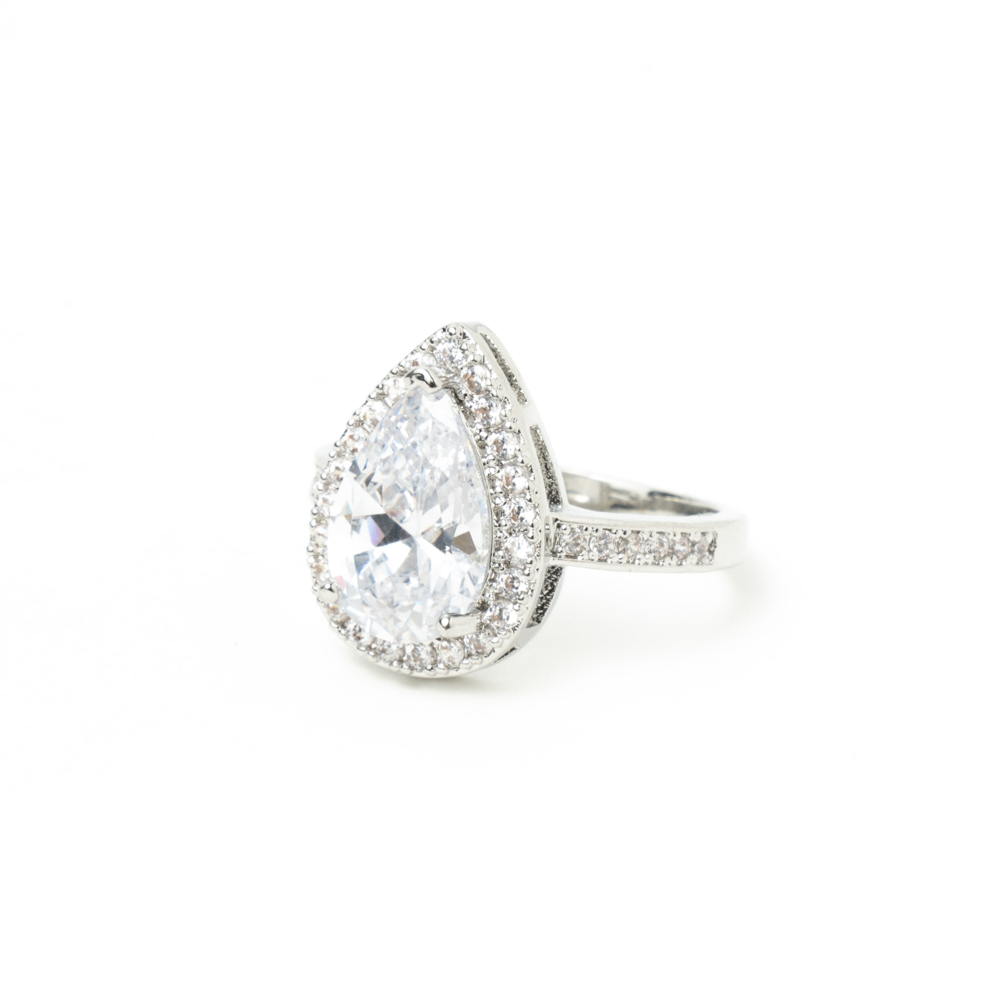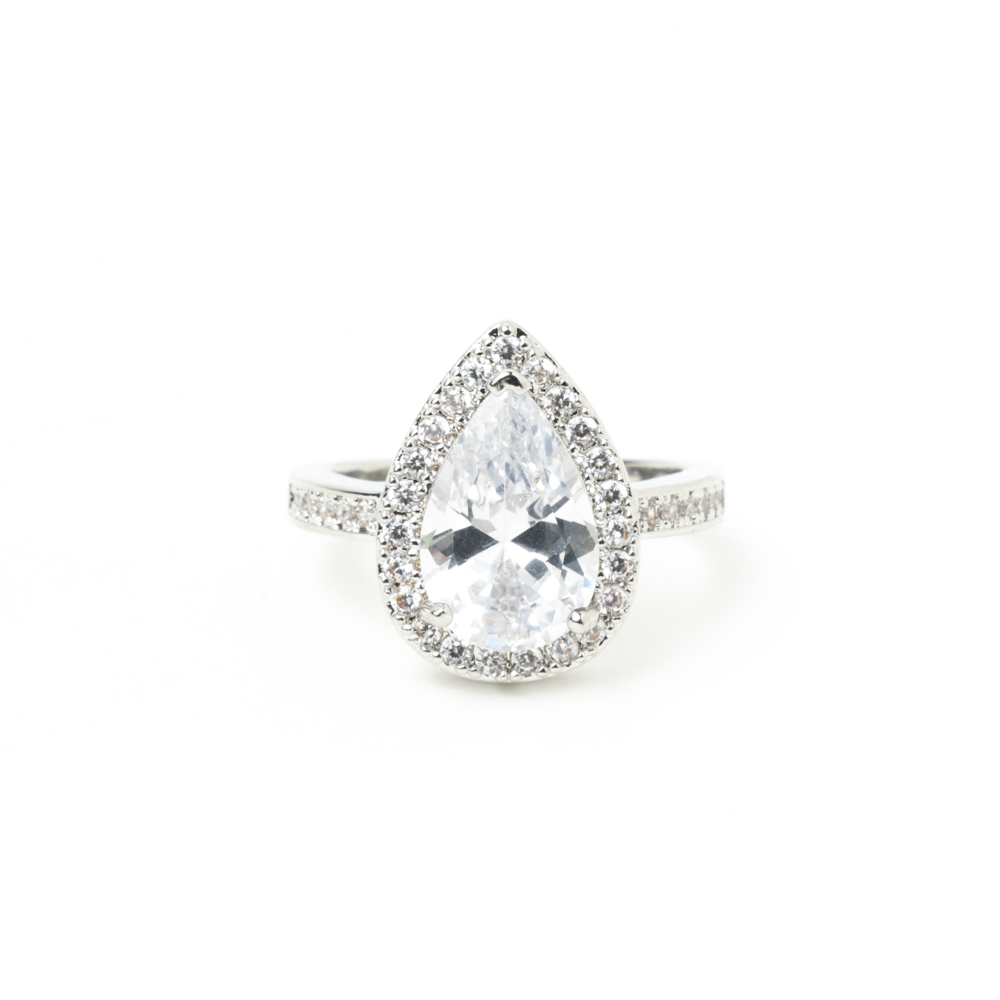 La seria Vega es una de nuestras piezas clave de la colección. La forma una piedra central en forma de lagrima acompañada por puntas de brillantes.